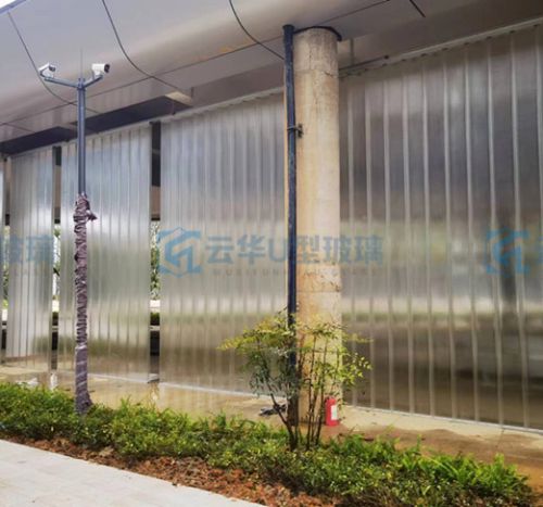 U玻幕墻為無鋼架龍骨結構,兩翼起到加強作用,強度超過同厚度普通平板玻璃的10倍以上,能夠自成墻體。